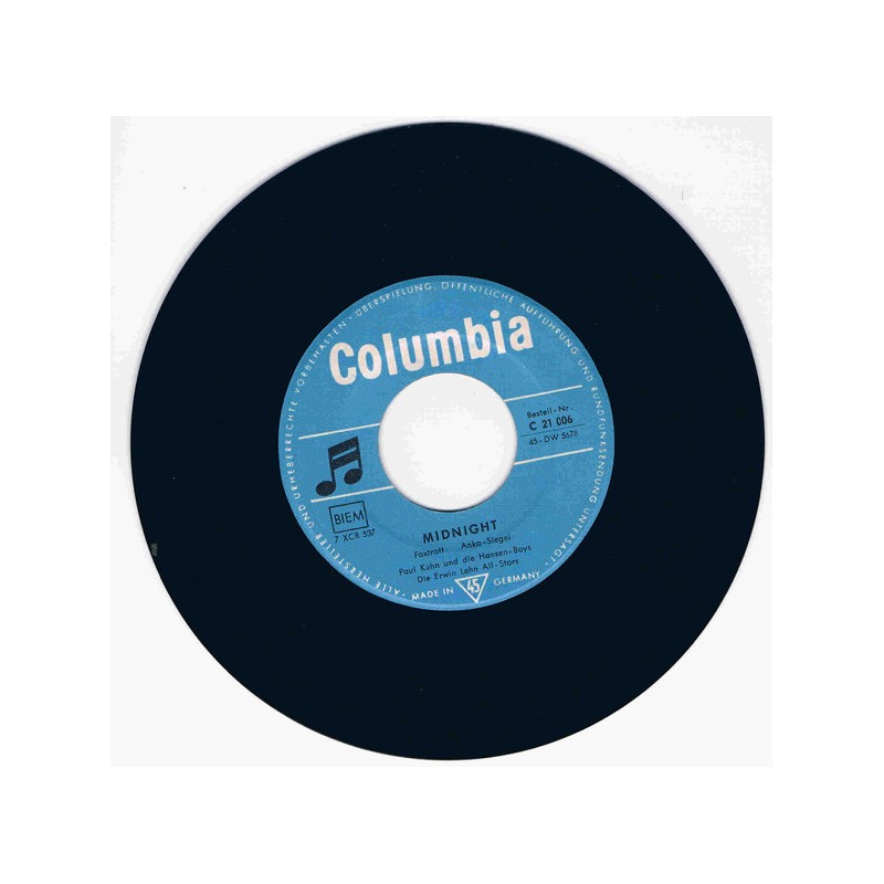 Kuhn Paul und die Hansen Boys ‎– Midnight / Secretly|1958 Columbia ‎– C 21 006-Single