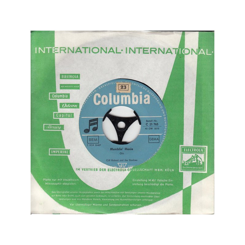 Richard Cliff and the Shadows ‎– Theme For A Dream / Mumblin' Mosie|1961 Columbia ‎– C 21 765-Single