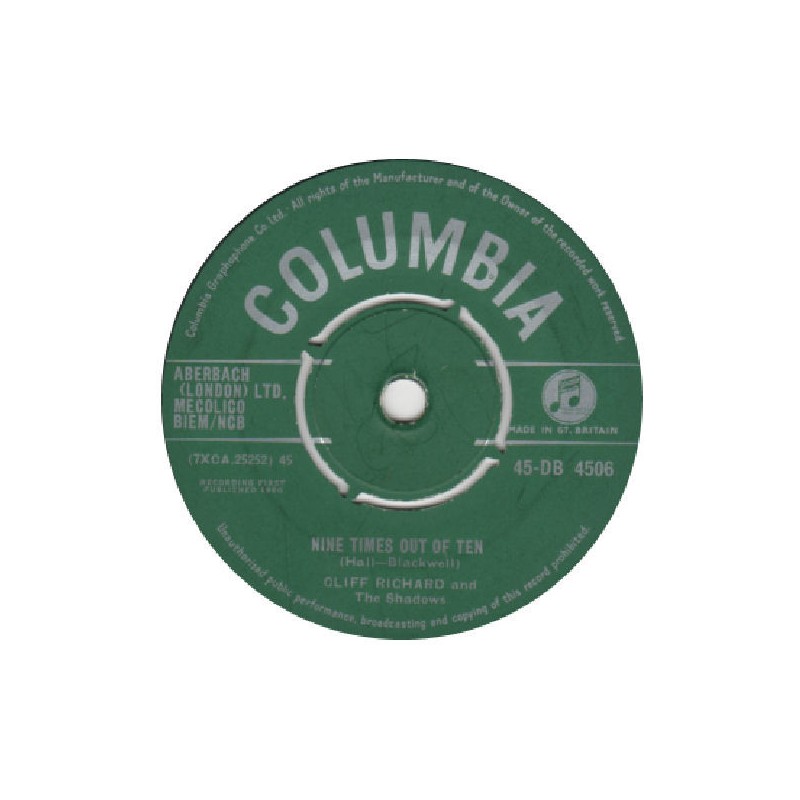 Richard Cliff and the Shadows ‎– Nine Times Out Of Ten |1960 Columbia ‎– 45-DB 4506-Single